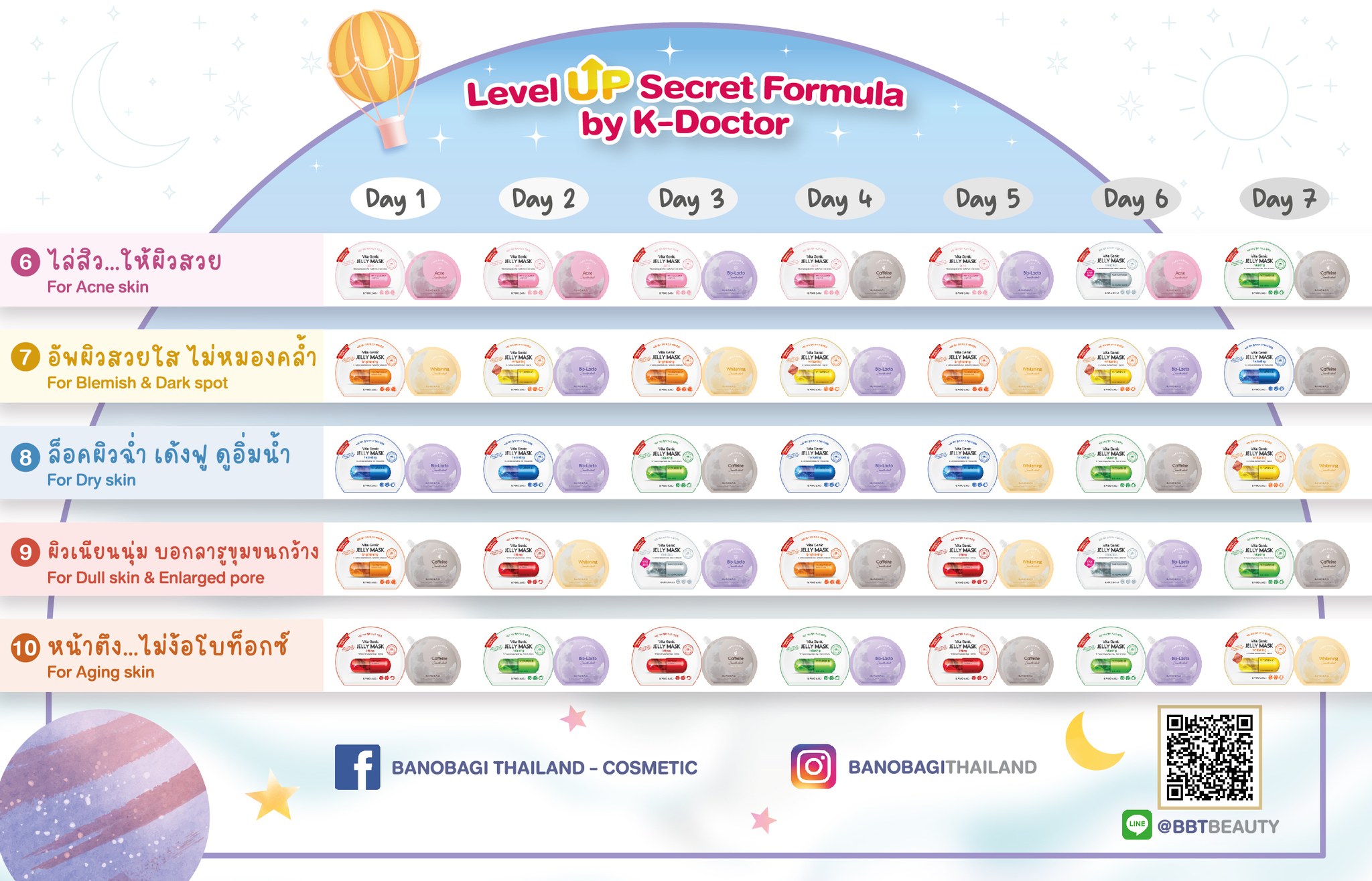 โดยสลีปปิ้งมาสก์ตัวนี้ คุณหมอคิดค้นออกมาให้เลือกใช้ทั้งหมด 4 สูตร ได้แก่