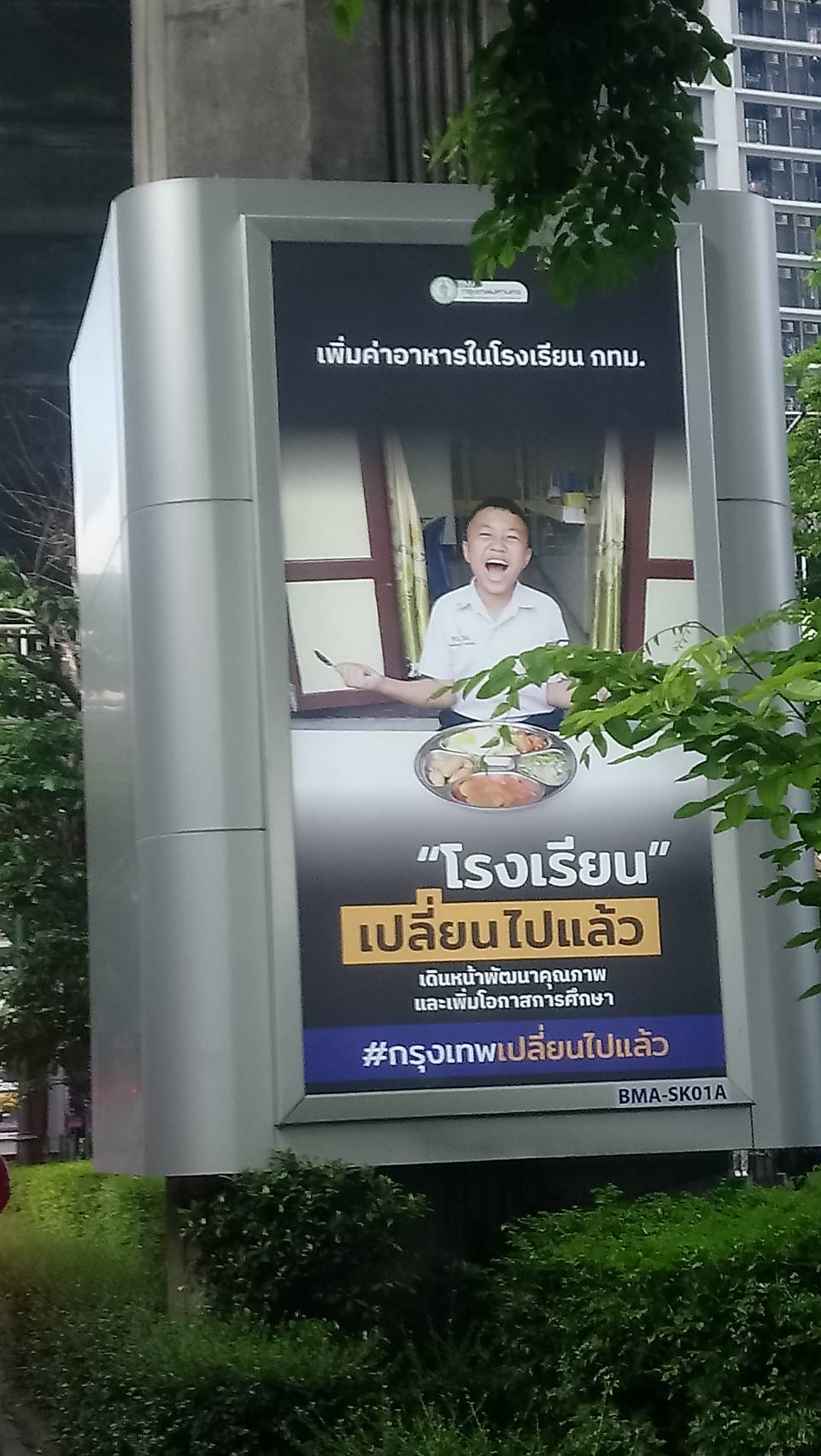 ขับรถผ่านเจอป้ายนี้ แว่บแรกที่เห็น เออดี เด็กนักเรียนจะได้กินดี มีสุขภาพดีมากขึ้น แต่เอ๊ะ ทำไมไม่เพิ่มทั้งประเทศ โฆษณาหวังผลถึงการเลือกตั้งผู้ว่าฯก.ท.ม.ด้วยไหมนะ