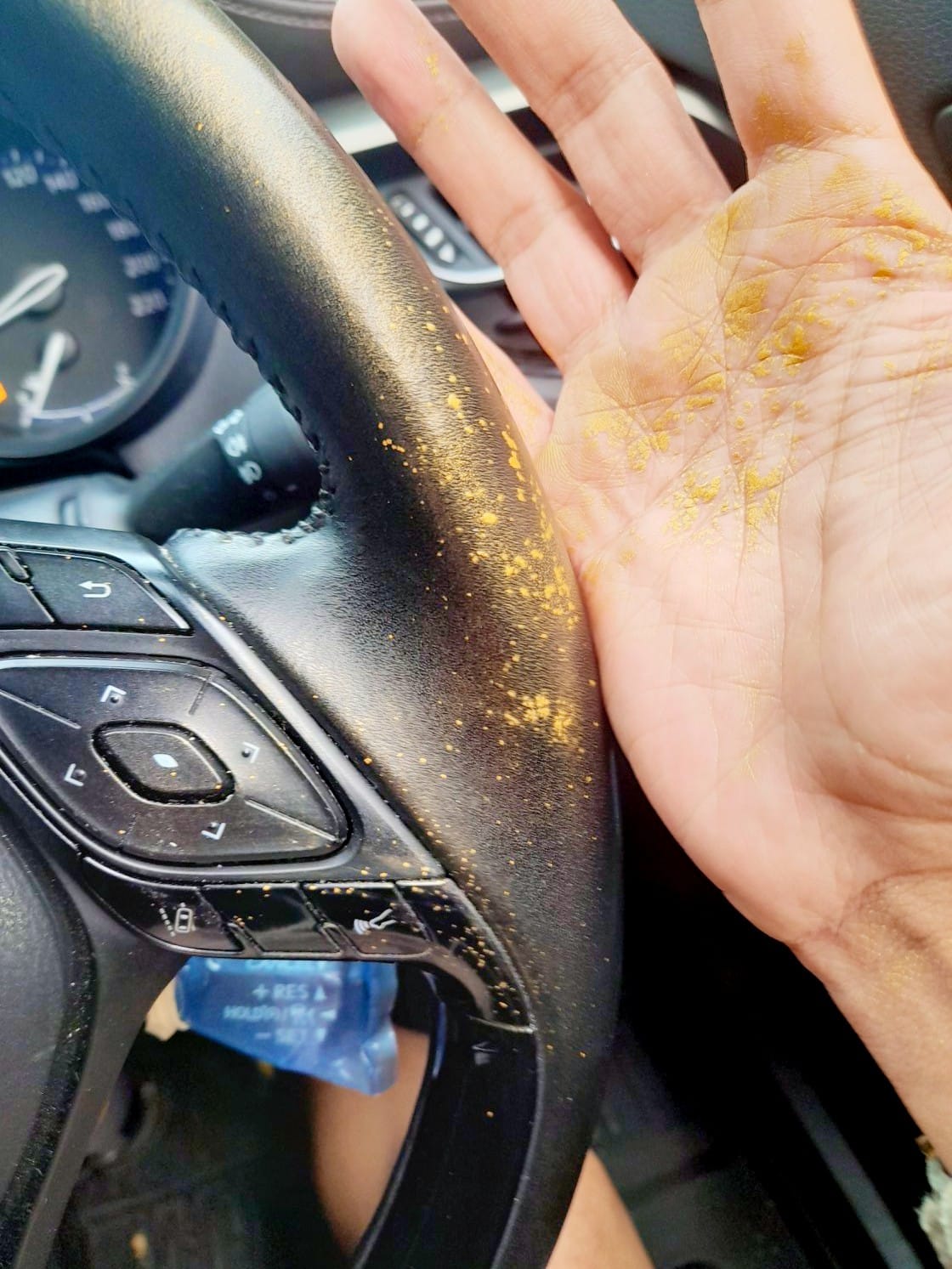 สีน้ำมันติดมือ สีมันแห้งแล้ว แต่เหงื่อมือน่าจะออก แล้วจะใช้อะไรเช็ดได้ครับที่มันไม่ทำลายหนังพวงมาลัย ขอบคุณด้วยความจริงใจ