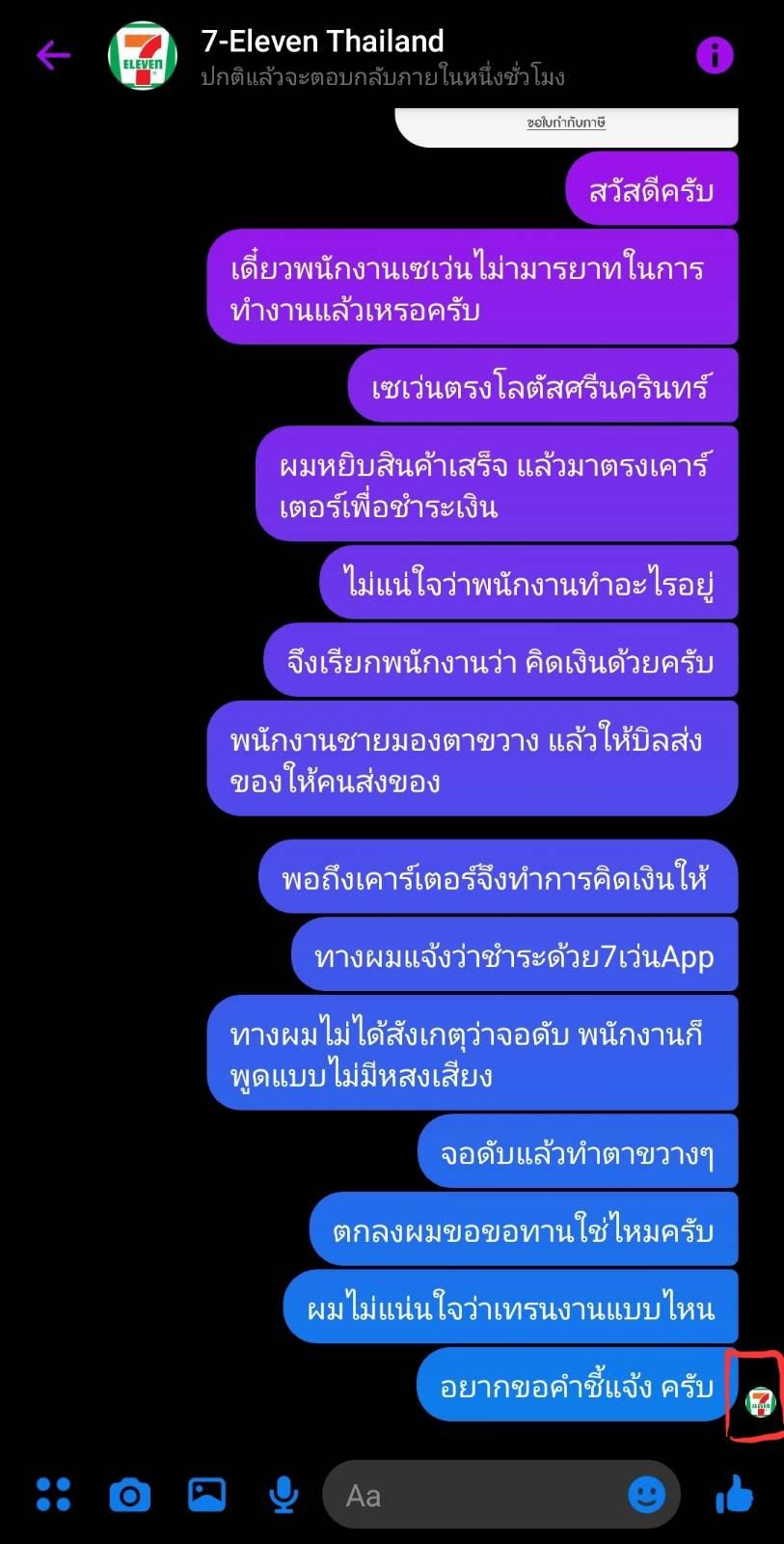 เวลาร้องเรียนกับเพจเซเว่นส่วนตัว ทำไมแอดมินแค่อ่านแต่ไม่ตอบ หรือต้องการช่วยเหลือพนักงานกันเอง เราก็เป็นลูกค้าคนหนึ่ง แค่อยากสะท้อนพฤติกรรมของพนักงาน ช่วยกันปิดบังแบบนี้ เปลี่ยนแอดมินเถอะครับ เอาคนที่อยากทำงานจริงๆมาทำงานดีกว่า