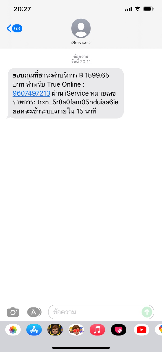 เราใช้เบอร์ ais. และใช้ true wallet ไม่รู้เกี่ยวกันมั้ย อยู่ๆมีข้อความนี้ขึ้นมาค่ะ เราว่าเราไม่ได้ทำธุรกรรมอะไรนะคะ รบกวนเช็คให้ทีว่ามันคืออะไร
