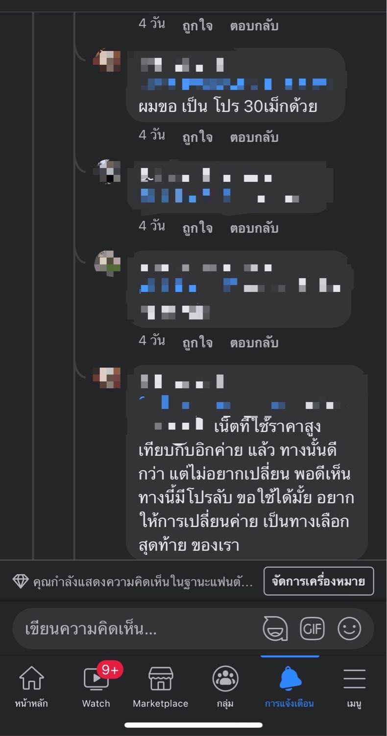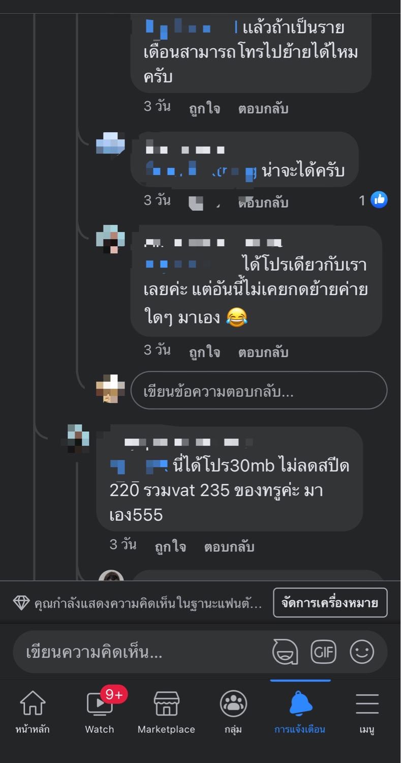 ผมต้องการลดค่าใช้จ่ายปกติ ais รายเดือน ผมเดือนละ 568.93 บาท ได้เห็นสมาชิกในเพจเฟสบุ๊คย้ายค่ายละได้โปร 15 mb ไม่ลดสปีด โทร 100-200 นาที เดือนละ 100.-ผมจึงอยากจะขอลองเปลี่ยนไปใช้งานอันโปรแบบนี้ เพื่อลดภาระค้าใช้จ่าย แล้วลองโทร 1175 ก็บอกไม่มี หลังไม พันทิพais แล้วก็ไม่ได้ บอกว่าผมเป็นรายเดือนมีสิทธิพิเศษอื่นๆพ่วง ซึ่งจะให้เปลี่ยนเป็นเติมเงินผมก็สะดวกนะครับ ถูกกว่า เลยอยากสอบถามค่ายอื่นๆด้วยครับ อยากจะขอโปรดีๆแบบนี้ รบกวนด้วยครับ