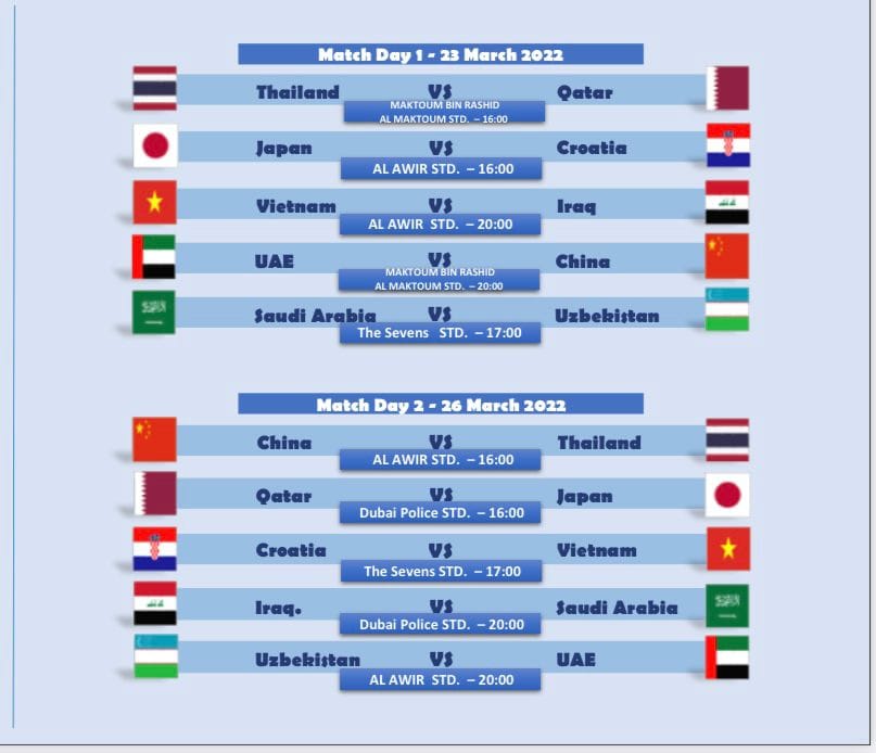 แต่เพจ สถานกงสุลใหญ่ ณ เมืองดูไบ แจ้วว่าเจ้าภาพมีการ เปลี่ยนแปลงเป็นสนามมักทูม บิน ราชิด อัล-มักทูม สเตเดี้ยม เวลา 19.00 น.(เวลาไทย)