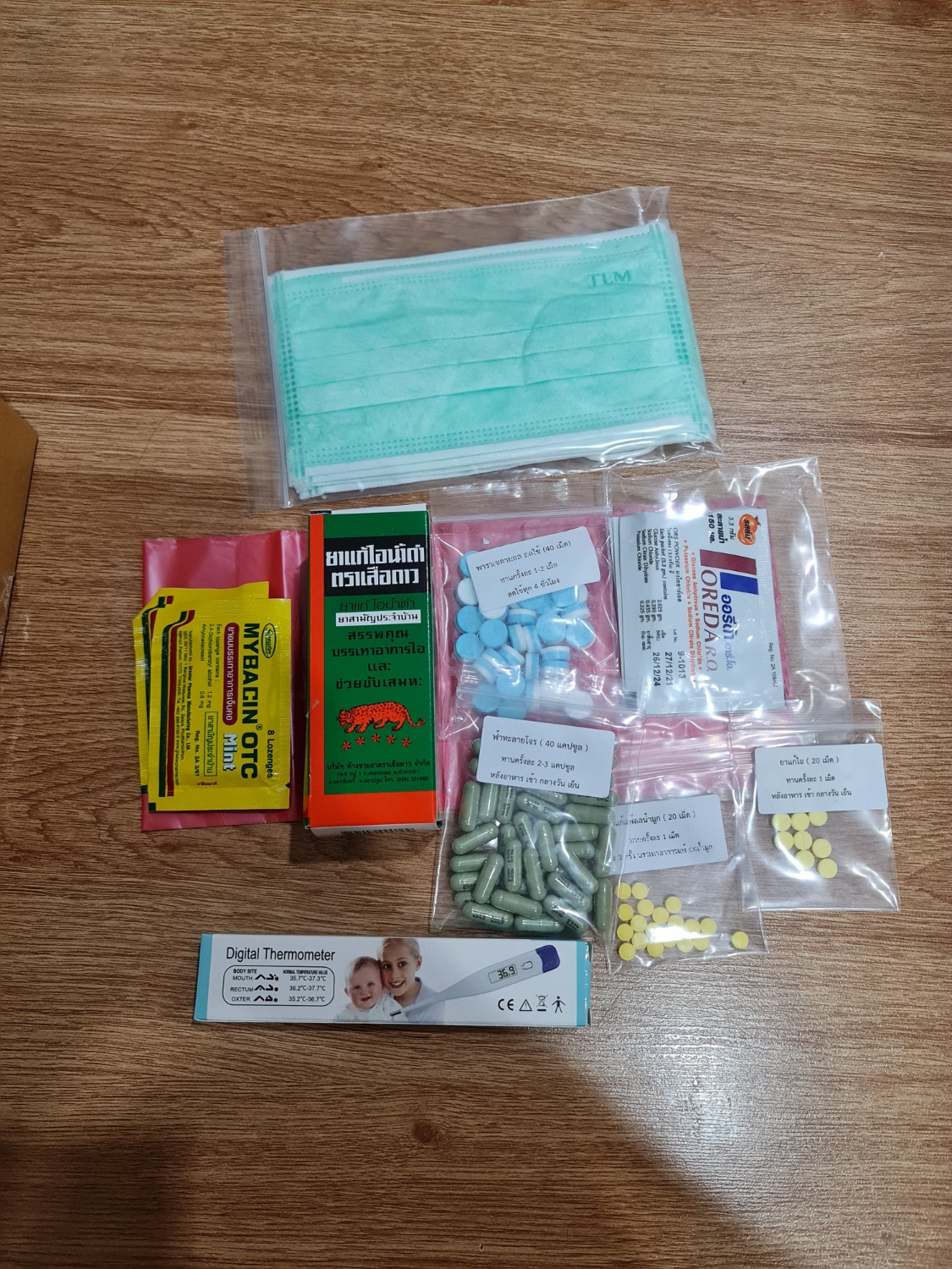 นี่คือกล่องยาสำหรับผู้ป่วย home isolationที่ทางคลินิกแห่งหนึ่งที่ทาง สปสช. จับคู่มาให้เราค่ะ จากการลงทะเบียนทางไลน์ สปสช.