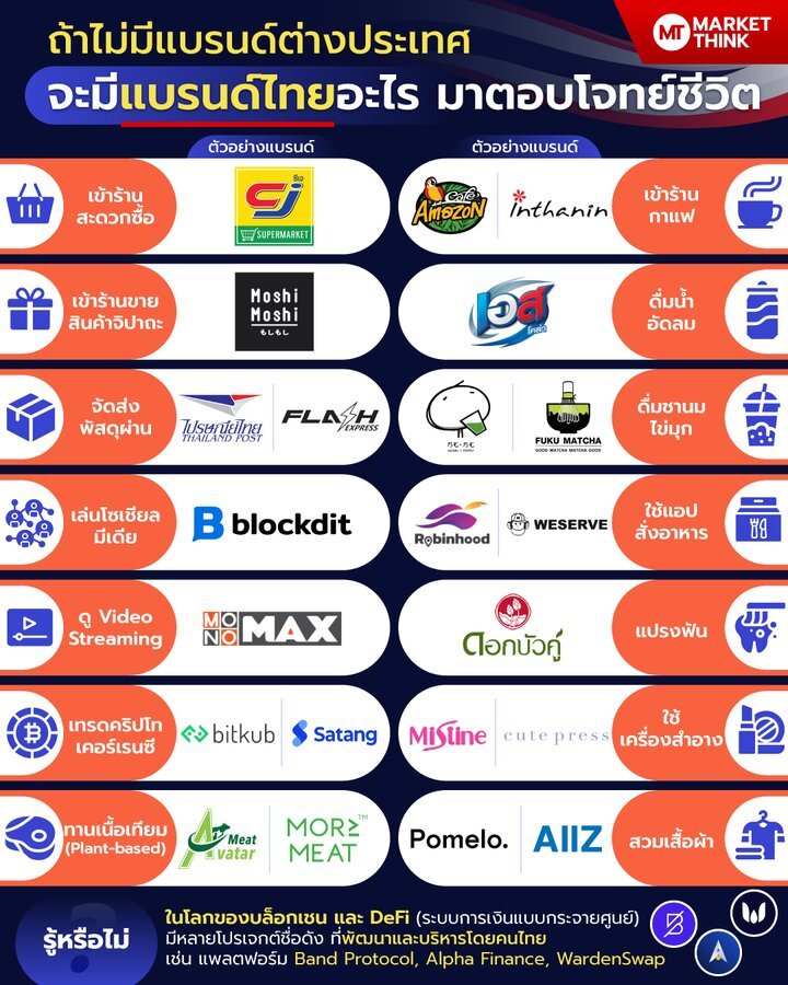 ถ้าไทยเกิดถูกคว่ำบาตรขึ้นมา เรามี ของกิน ของใช้ หรือ เครื่องสำอาง ยารักษาโรค อันไหนที่เป็นแบรนด์ของไทยเองบ้างคะ