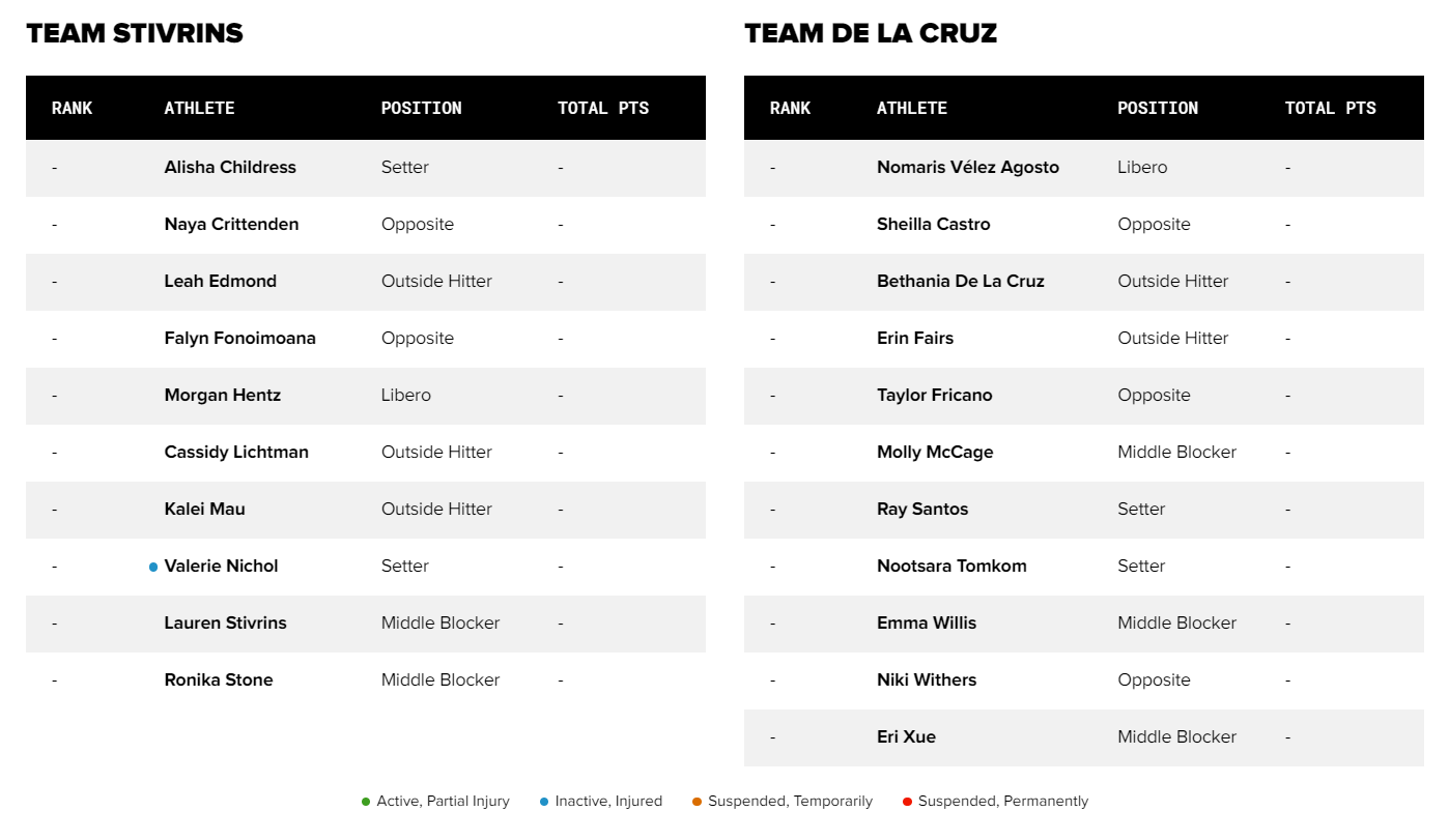 LIVEAthletes Unlimited TEAM ROSTERShttps://auprosports.com/draft/volleyball-2024-week-1/