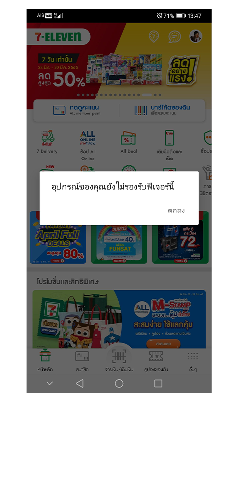 วันนี้เครื่อง Huawei สั่งของทาง 7-Delivery ไม่ได้แล้ว
