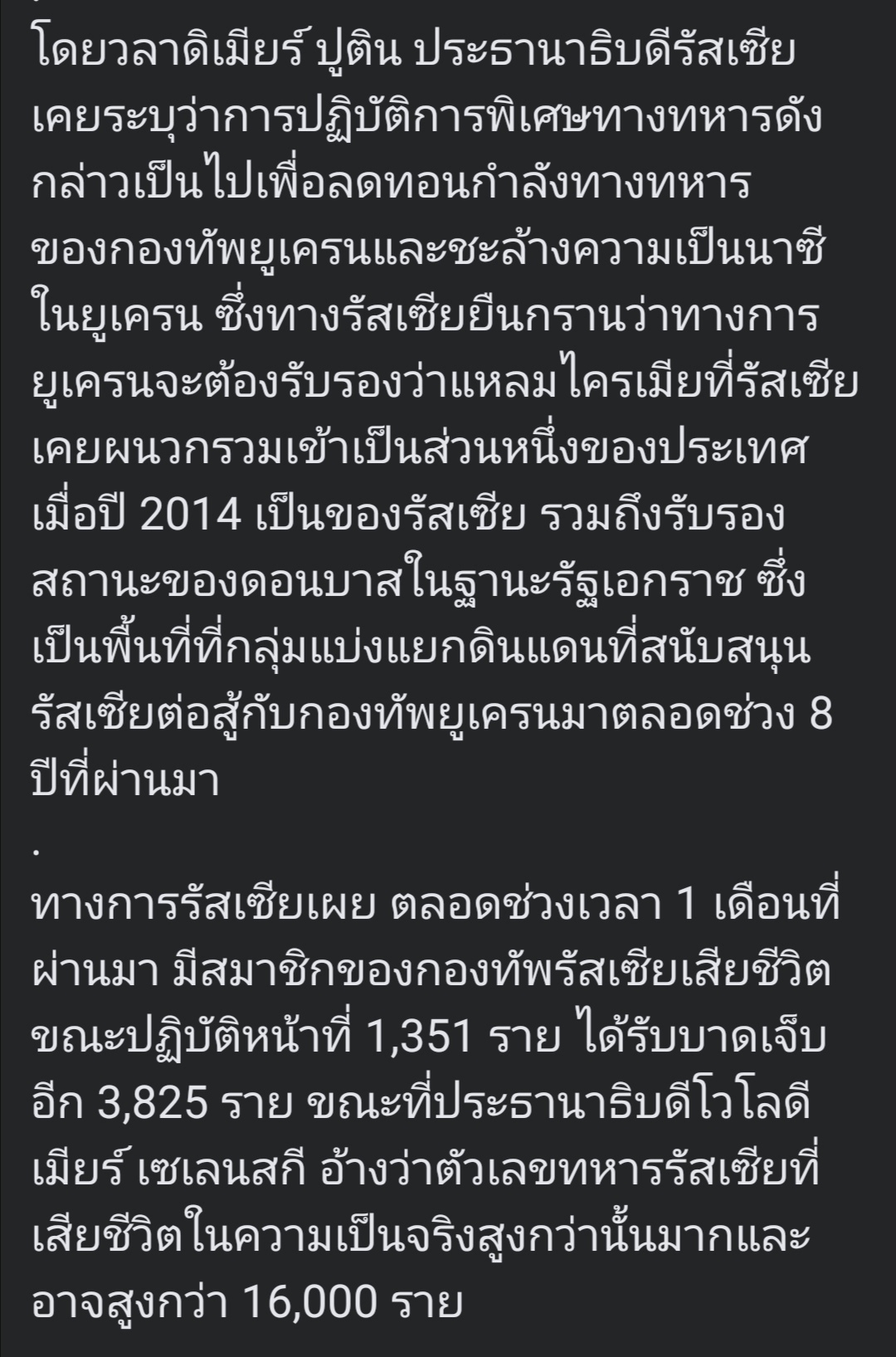 เผย กองทัพรัสเซีย เสียชีวิต 1,351 ราย บาดเจ็บ 3,825 ราย แล้ว ทาง ยูเครน ละ??