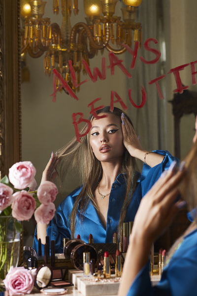 ผู้นำกระแส โดดเด่นด้วยสไตล์ล้ำสมัย ฉีกกฎการแต่งหน้าแบบเดิมๆ ด้วยซิกเนเจอร์ลุคโทนสีทองอมชมพูจัดจ้าน เผยผิวแมทโกลว์ ผิวแก้มไล้เบาๆด้วยเฉดสีแชมเปญ แต่งแต้มดวงตาให้โดดเด่นด้วยโทนสีพิ้งค์โกลด์เมทัลลิค ให้ความรู้สึกเร่าร้อนแต่อบอุ่นราวกับแสงแดดยามเช้า รับกับเรียวปากเคลือบด้วยสีคอรัล ได้อย่างลงตัว