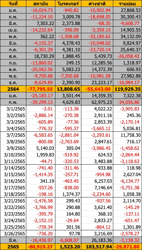 Sinthorn Summary : 28/3/2565 : ต่างชาติซื้อสุทธิ 3,216.69 ลบ.
