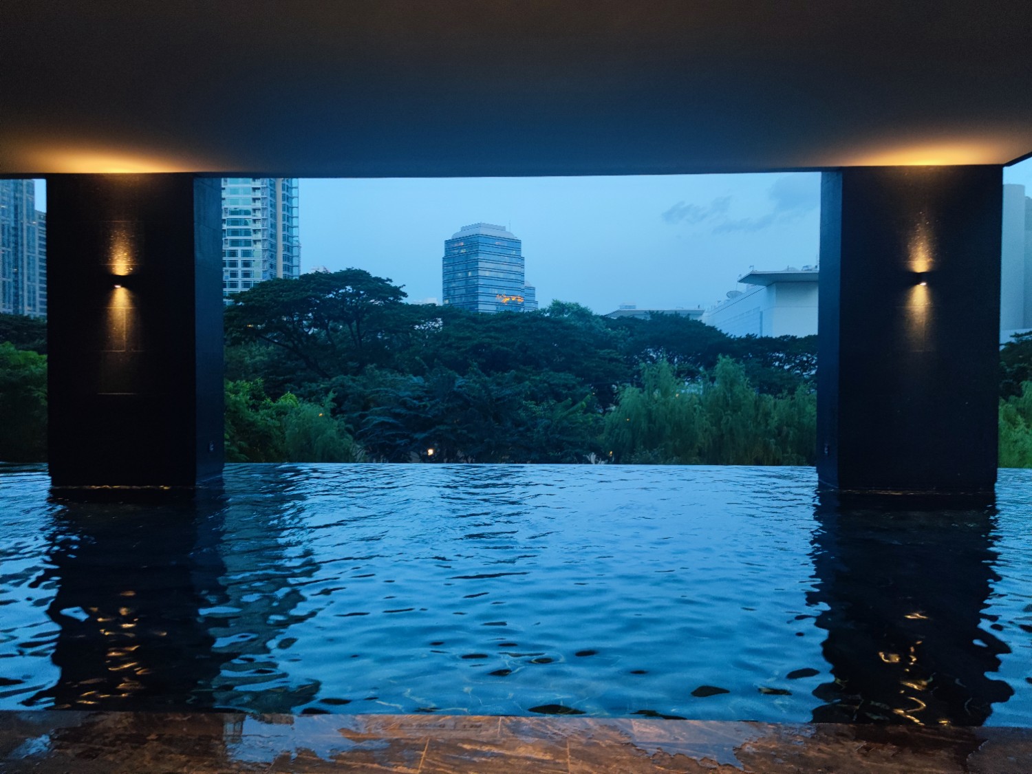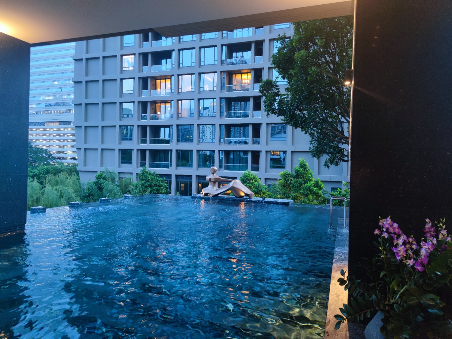 วิวตอนเช้า สระว่ายน้ำโรงแรมเพื่อนบ้านสวยดี