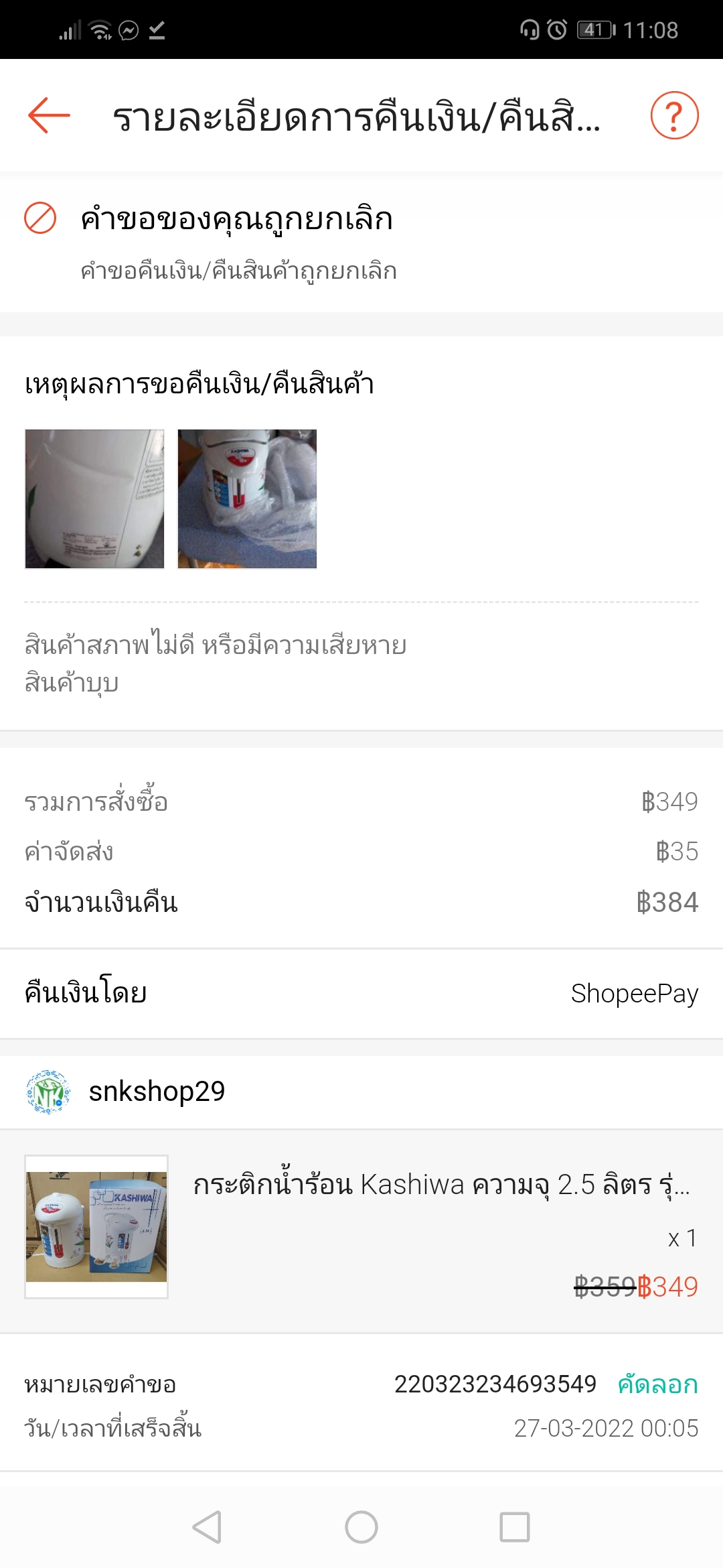 คือขอท้าวความก่อนนะคะว่า เราสั่งกระติกน้ำร้อนมาแล้วมันมีตำหนิคือมันบุบ แล้วก็จ่ายเงินปลายทางไปแล้วด้วย แล้วทีนี้เราทำรายการขอคืนสินค้าไปแล้วมันขึ้นแบบนี้ แปลว่าเราจะได้เงินคืนมั้ยคะ