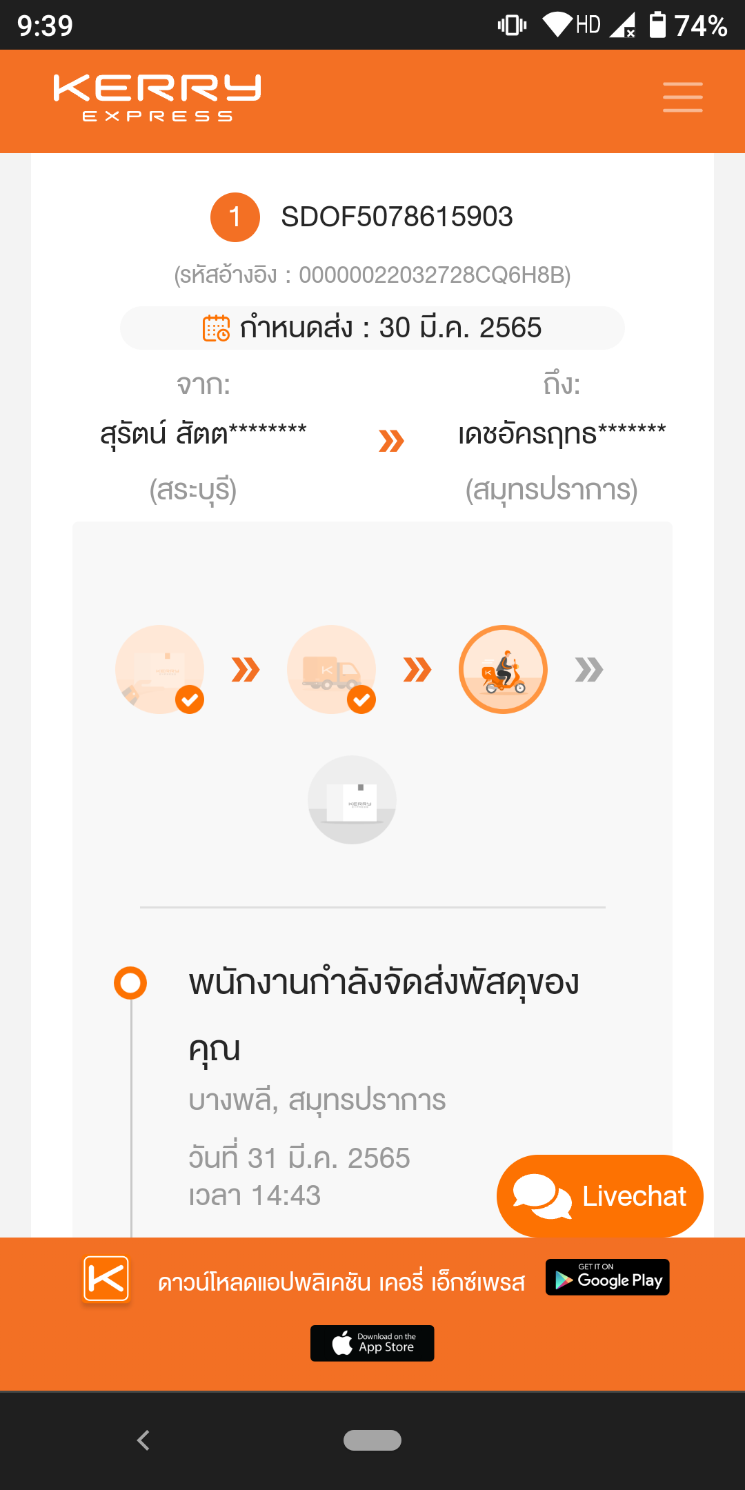 พัสดของ Kerry Express ถึงคลัง2วันแล้วไม่มีพนักงานจัดส่ง