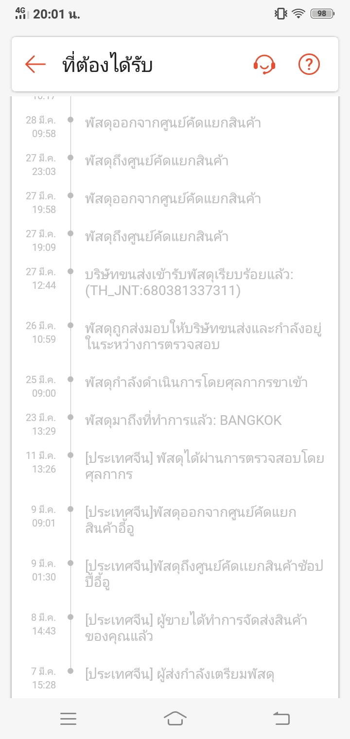 พัสดุตกค้างหลายวันแล้วของขนส่งJ&Tปกติต้องรอของนานเท่าไหร่ถึงจะได้ครับ?