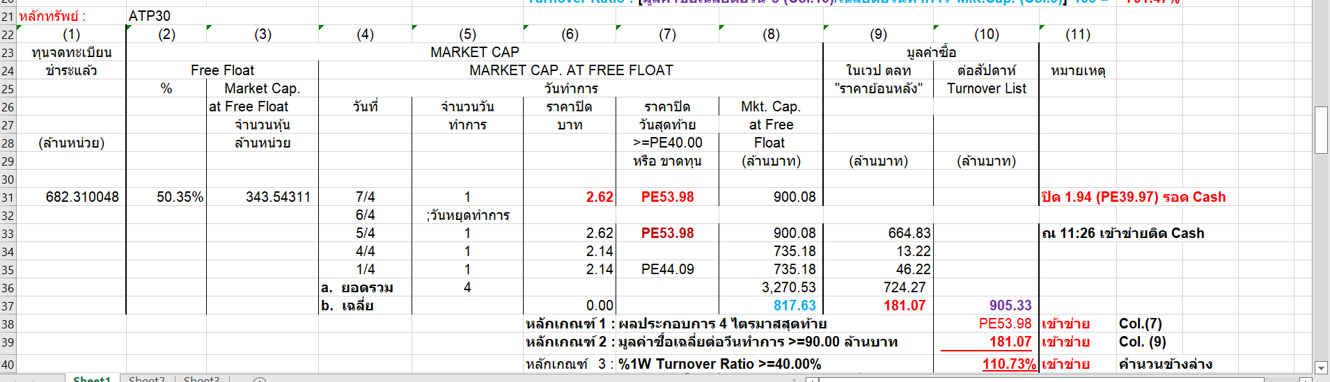 ATP30 : ณ 11:26 ได้เข้าข่ายทั้ง 3 หลักเกณฑ์ติด Cash เรียบร้อย