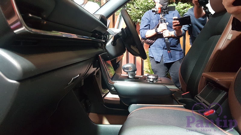 คันเกียร์รูปแบบใหม่ ดูแปลกตาเป็นเกียร์ไฟฟ้า ที่เปิดปิด แก้ว ตรงตำแหน่งผู้โดยสารตอนหน้าก็เป็นไม้คอร์ก