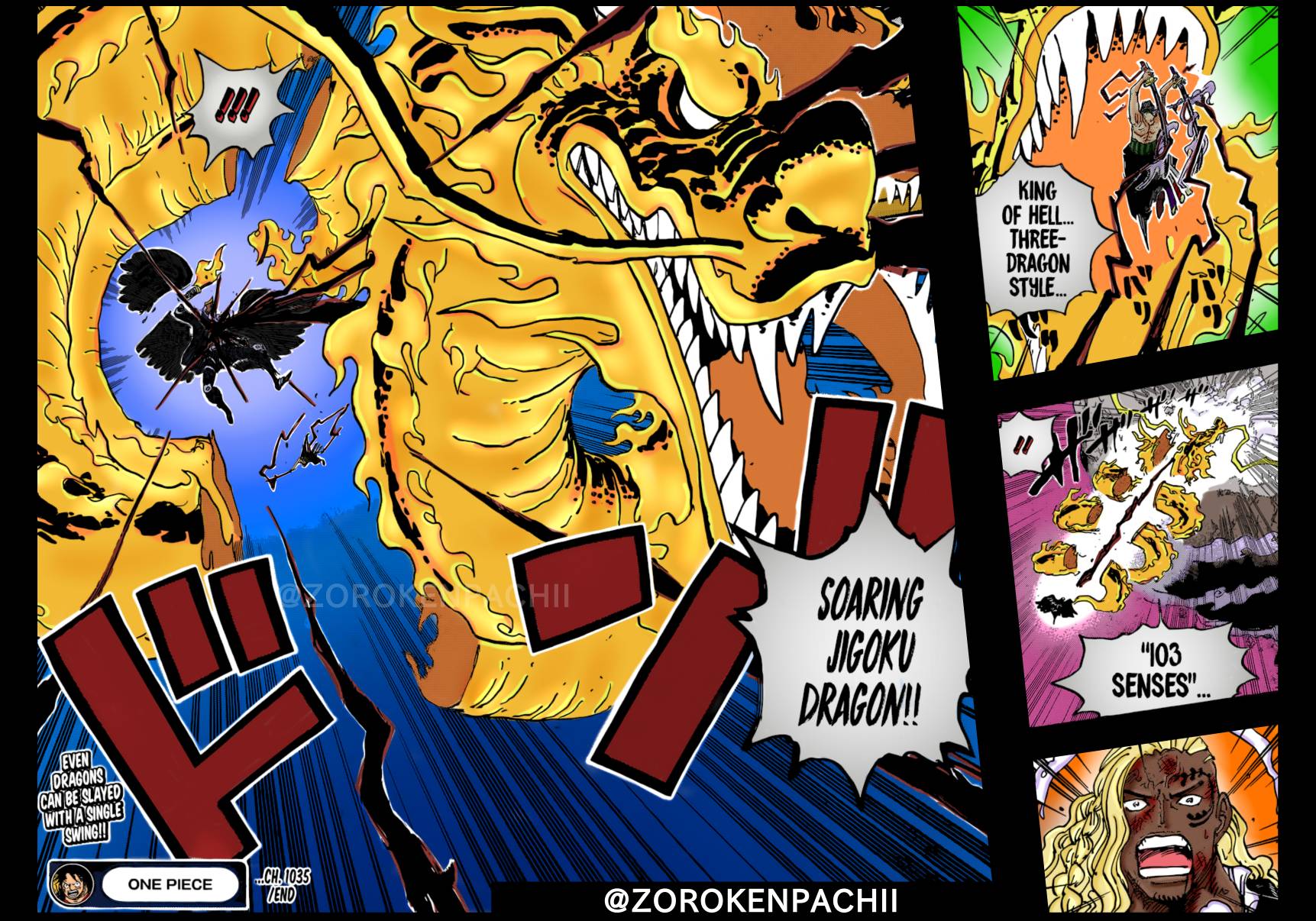 ด้วยสเกลพลังของฮาคิราชันย์ผู้พิชิต และสเกลพลังของดาบเอนมะ มันมาอยู่ในมือของโซโลทำให้พลังโจมตีของโซโล พุ่งแบบกระจุยกระจาย