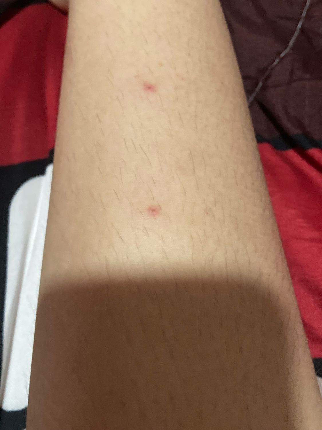 ตัวอะไรไม่รู้กัดตอนนอนค่ะ --->พอตื่นมาก็เจอตุ่มแดงที่ขาอยู่ประมาณ2-3จุด นึกว่ามดหรือยุงกัด แต่ก็ไม่ใช่เพราะเราเป็นคนขี้หนาวห่มผ้าห่มตลอด เราก็เลยไม่ได้สนใจอะไร พอผ่านไปอีกคืนตุ่มนี้ก็เพิ่มมาอีก คัน