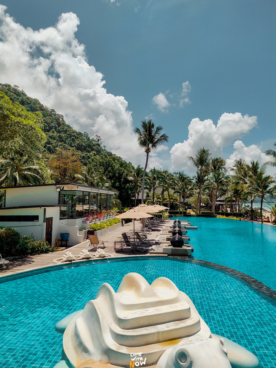 มีสไลเดอร์เล็กจากสระหน้าห้องลงมาสระรวมข้างล่างอีกที หลายสระขนาดนี้ได้รูปเยอะแน่ทุกคน นอกจากทะเลจะใสสระน้ำก็ยังใสไปอีกค่า