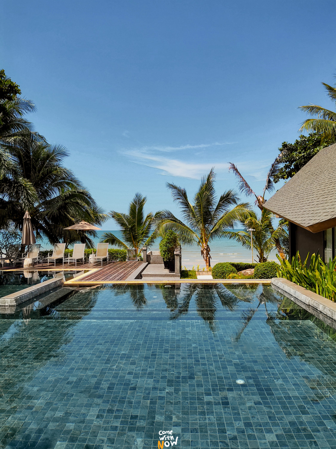 อยู่ติดกับสระว่ายน้ำเปิดประตูก้าวเท้าลงได้ทันที เฉพาะห้องพักชั้นล่างสามารถเล่นสระส่วนนี้ได้ เรียกว่าค่อนข้างส่วนตัวนิดนึงเลย