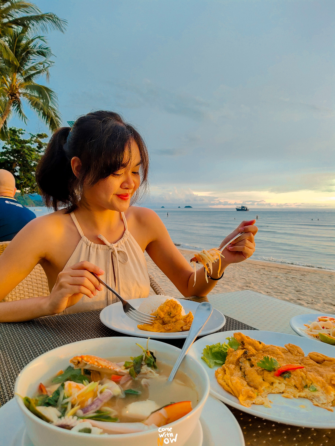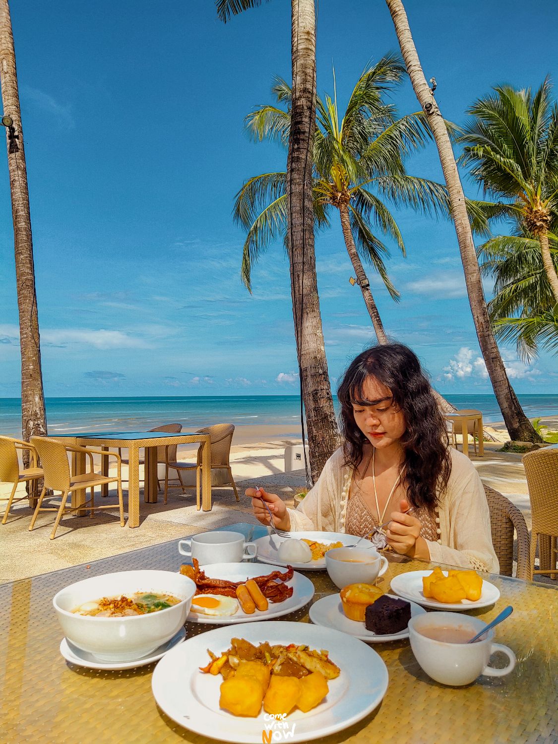 ถ่ายรูปจนเย็นและหิว เราเลยออกมานั่งที่ The Beach Restaurant ห้องอาหารติดริมทะเล ให้บริการทั้งลูกค้าที่เข้าพัก KC Grande และลูกค้าภายนอกด้วยน้า
