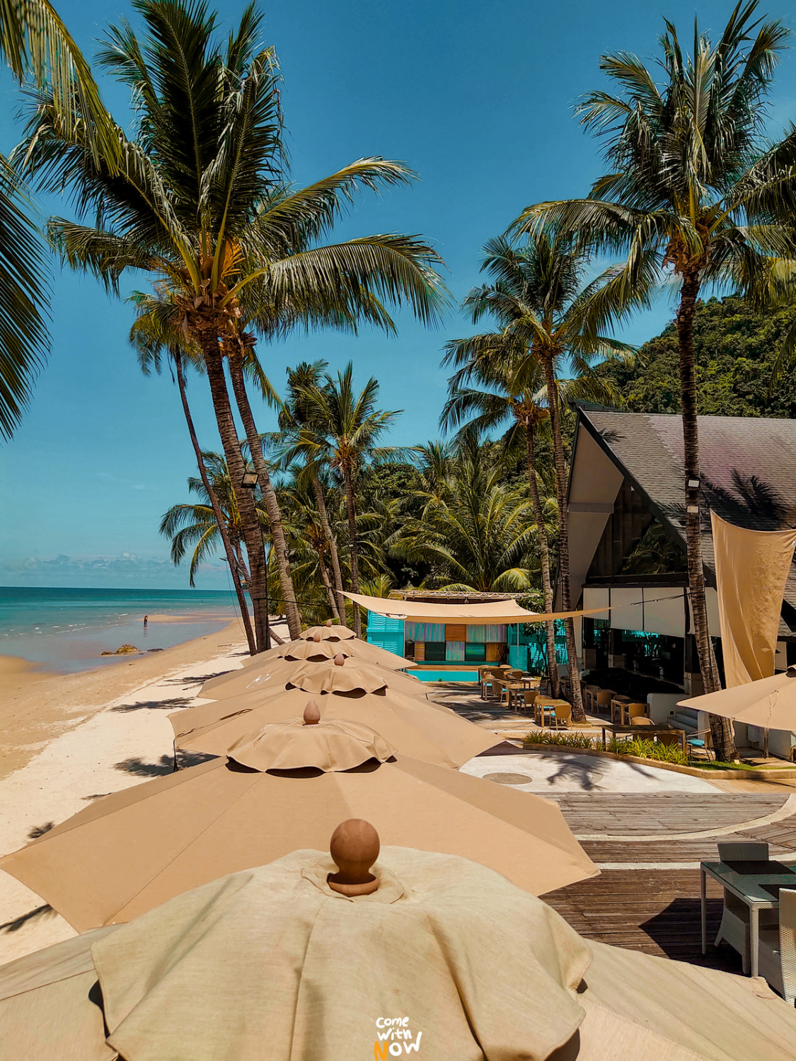 น้ำใสจริงนะ..นาวไม่ได้หลอกคุณ ช่วงเวลาที่ไม่ค่อยมีใครคือตอนสายที่ทุกคนตื่นมากินข้าว จังหวะนี้แหละให้เราลงทะเลทันที หากใครเคยมาพักจะรู้ดีว่ามีนักท่องเที่ยวมาเล่นน้ำที่หาดทรายขาวเยอะมาก และเป็นชายหาดที่สนุกครึกครื้น