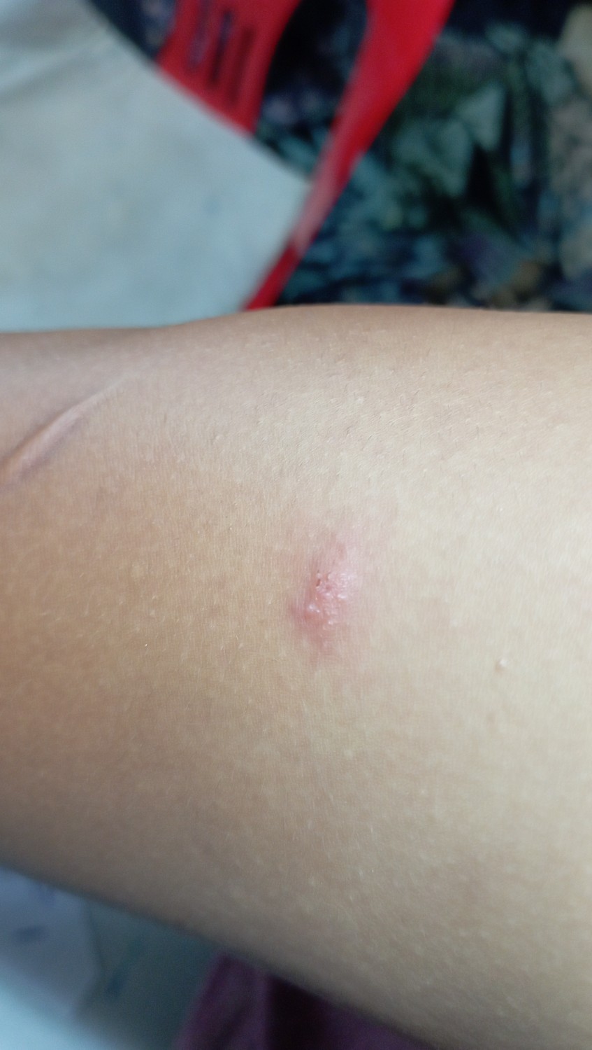 คนที่บ้านไปโดนอะไรมาไม่รู้ค่ะ ลักษณะคล้ายฝี แต่ไม่มีหัวฝีแต่เป็นตุ่มน้ำใสตามรูปเลยค่ะ ไม่ปวด ไม่คัน รู้ตัวตอนที่จะนวดแขนแล้วมีอะไรแข็งๆที่แขน ไม่รู้ว่าเป็นนานแค่ไหนค่ะ กดแล้วเจ็บเหมือนสิว