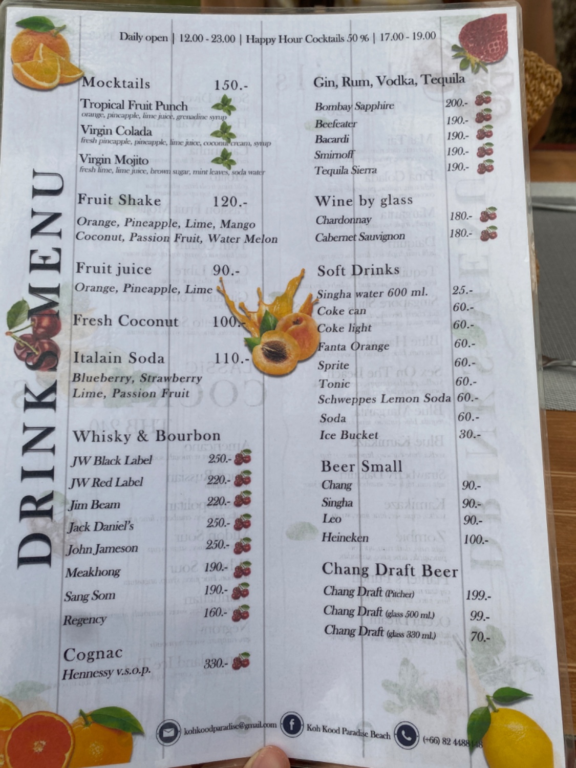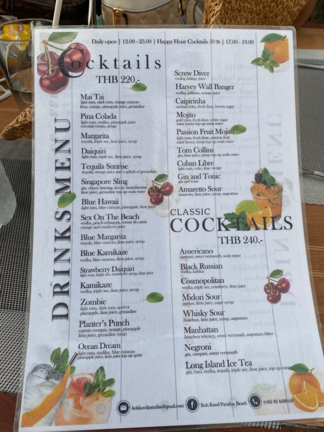 เราไปทานอาหารช่วงเวลาที่ cocktail ลด 50% (ช่วง 17:00 - 18:00 เราจำเวลาแน่นอนไม่ได้)