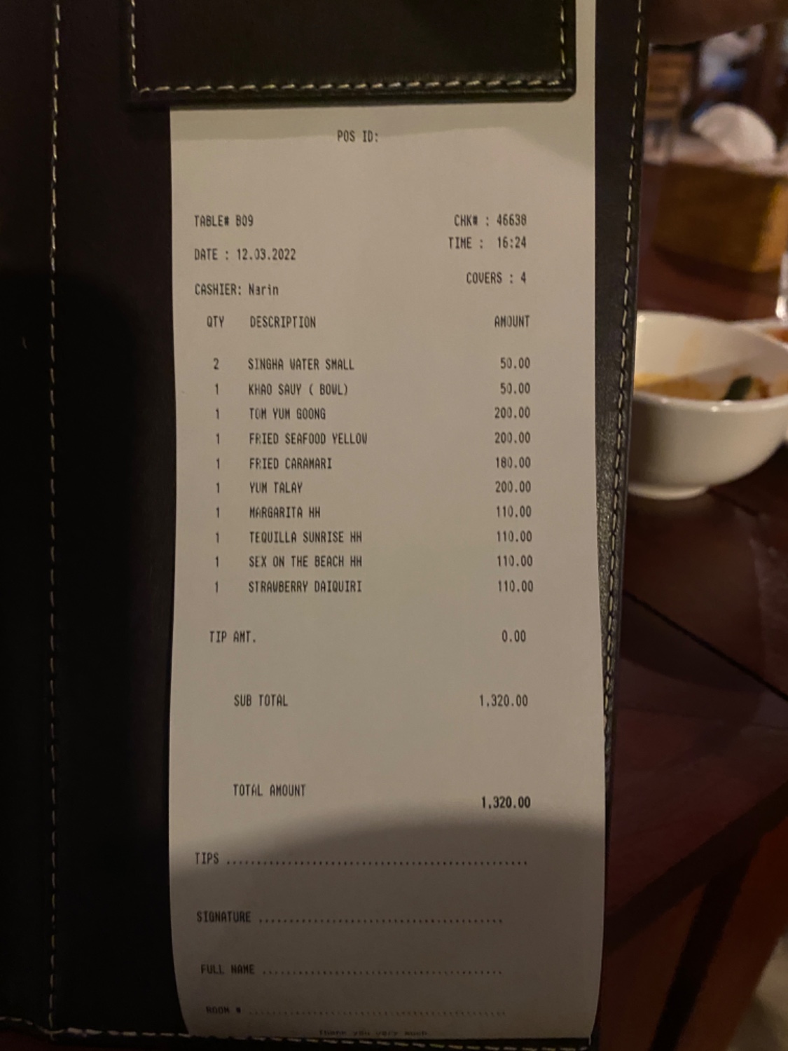 สำหรับค่าใช้จ่ายมื้อนี้หมดไป 1,320 บาท