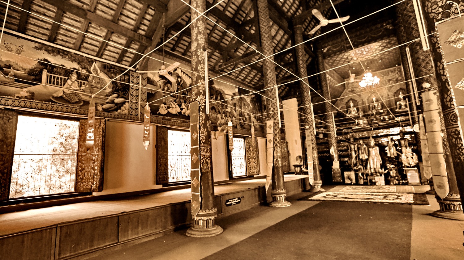 องค์พระพุทธรูปบางส่วนเป็นไม้และบางส่วนยังคงสภาพทองสัมฤทธิ์แบบเดิม