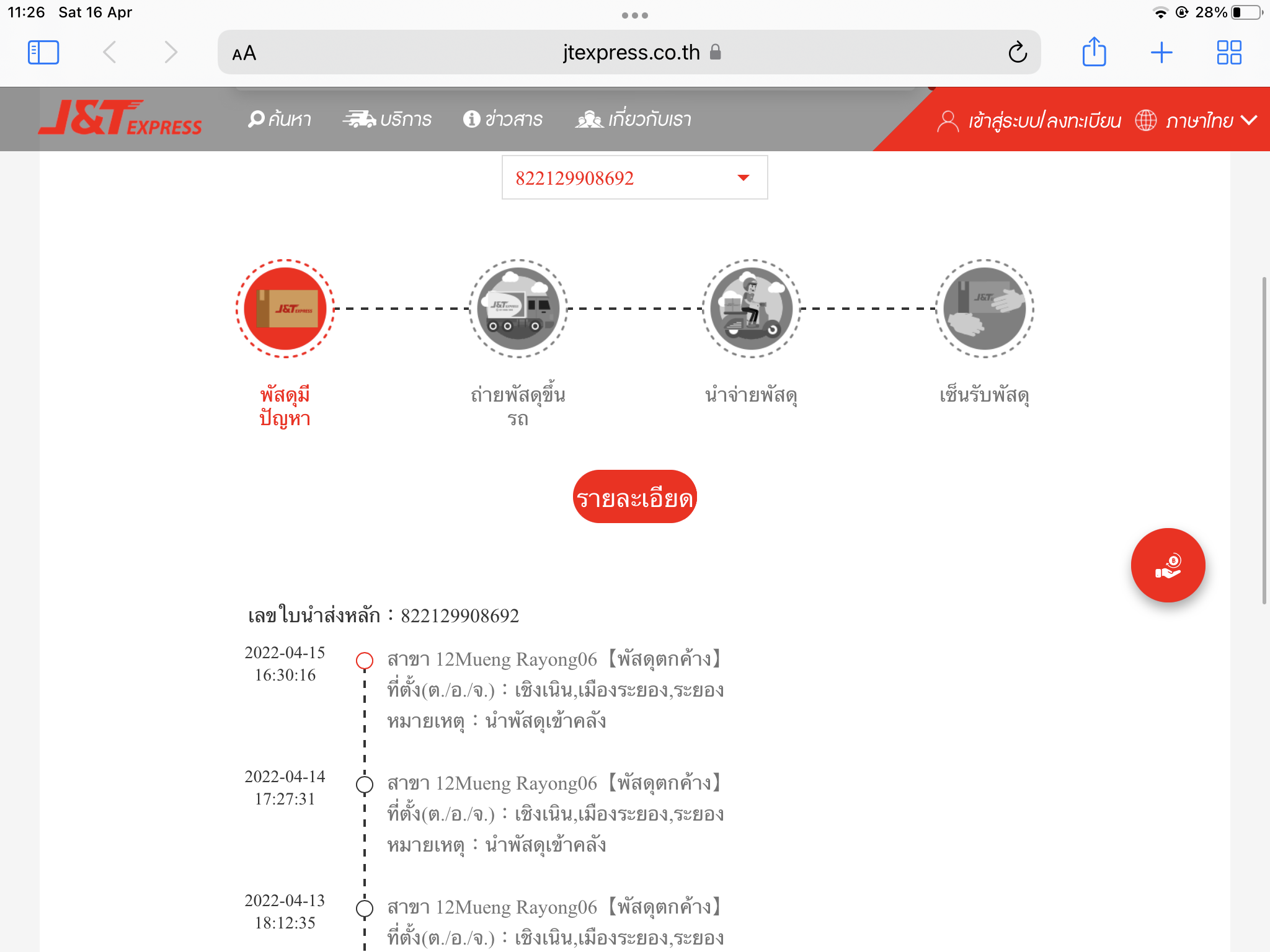 ขอสอบถามค่ะ มีใครเคยเจอแบบนี้บ้างไหม หรือพอจะมีเบอร์ติดต่อของ ศูนย์กระจายพัสดุวังน้อย หรือเบอร์เจ้าหน้าที่ J&T ที่สามารถติดต่อได้บ้างไหมคะ? ทางเราทำการจัดส่งพัสดุไปยังปลายทาง (อยุธยา) ตั้งแต่วันท