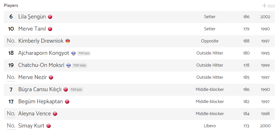 ผู้เล่นคนใหม่ Sarıyer Belediyesi 2022-2023
