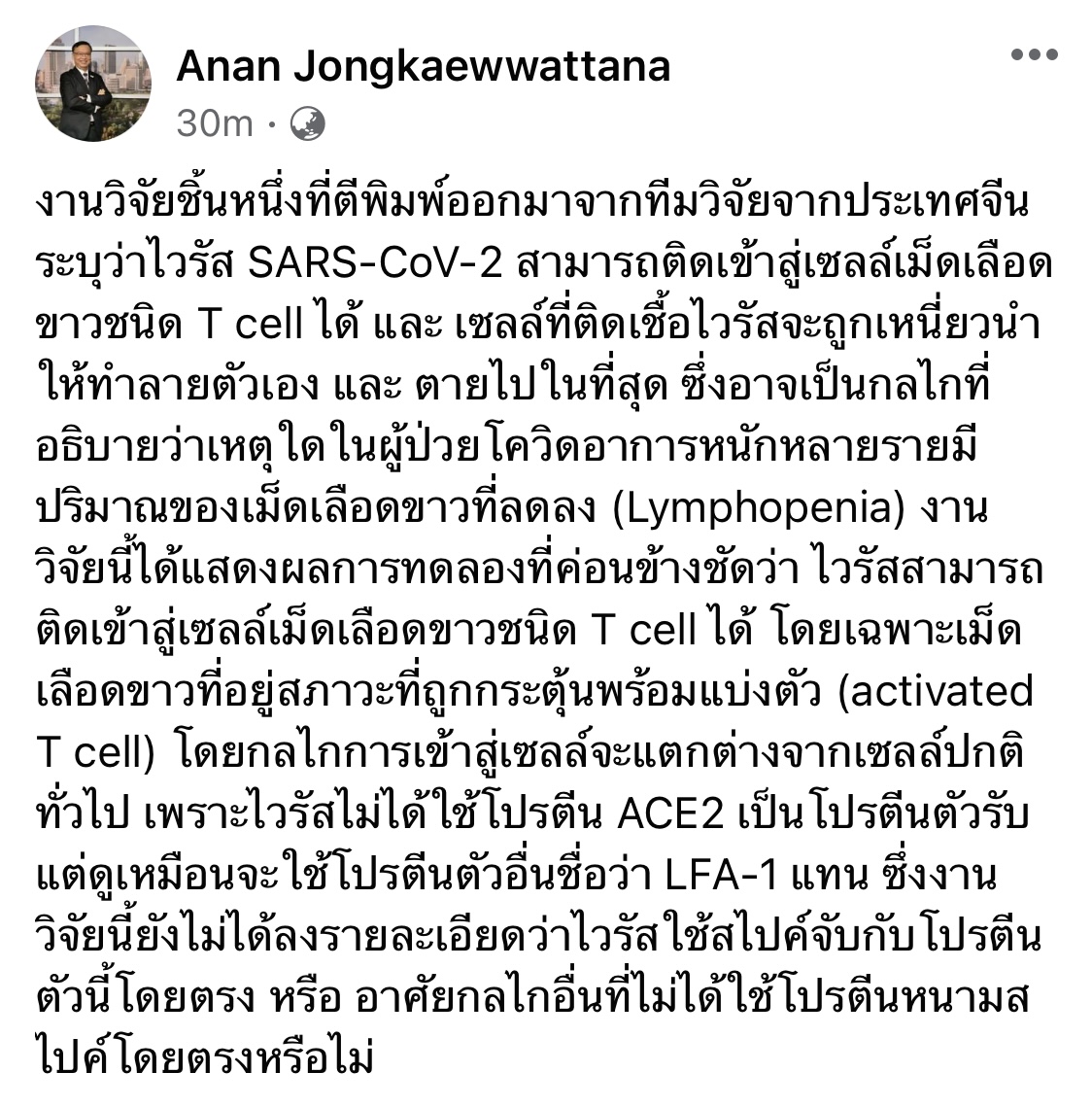 เชื้อโควิดสามารถติด T-cell และทำให้ T-cell ตายได้