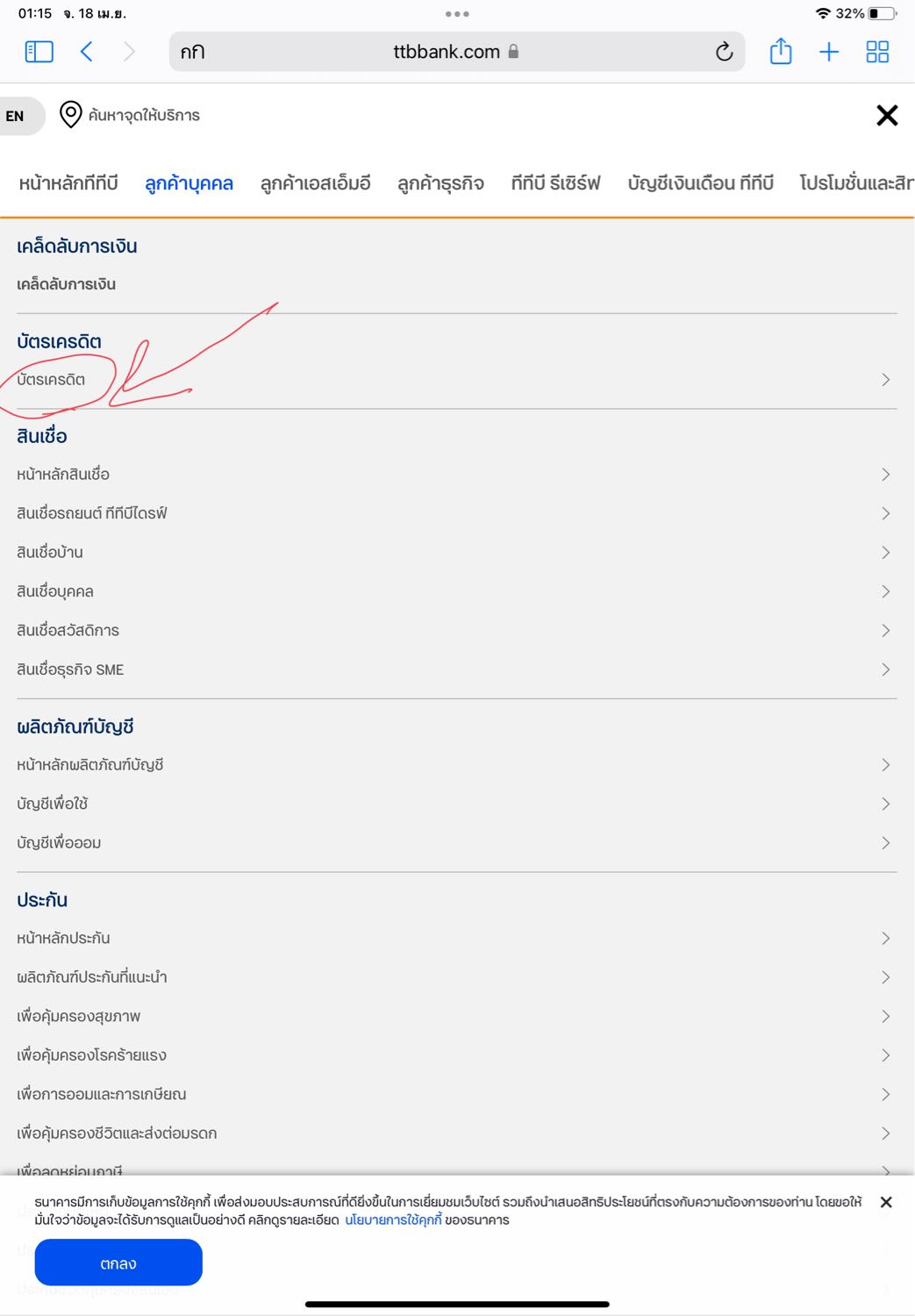 -ผมเข้าเว็บของ ttb เลือกหัวข้อบัตรเครดิต และเลือกทีทีบี โซฟาสต์