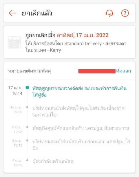 ผมสั่งแผ่นไม้ปูปิดท้ายรถมาจากร้านนึง ซึ่งก็ได้ติดต่อทางร้านตลอดจนร้านส่งสินค้าไปให้กับ Kerry ครับ ซึ่ง Kerry ก็เข้ามารับของวันที่ 8 เมษายนที่ผ่านมา และก็หยุดสงกรานต์มาก็เข้าใจ จนสถานะมันมาแปลกๆเมื่อวันที่ 16 เมษายนที่ผ่านมา และที่แปลกที่สุดคือวันนี้ที่บอกว่าพัสดุสูญหาย
