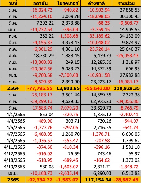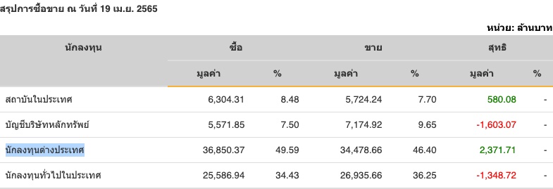 Sinthorn Summary 19/4/2565 : ต่างชาติซื้อสุทธิ 2,371.71 ลบ.