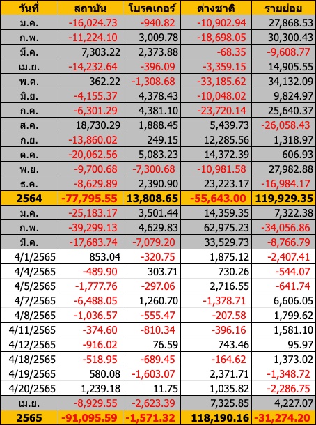 Sinthorn Summary 20/4/2565 : ต่างชาติซื้อสุทธิ 1,035.82 ลบ.