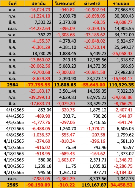 Sinthorn Summary 21/4/2565 : ต่างชาติซื้อสุทธิ 977.71 ลบ.
