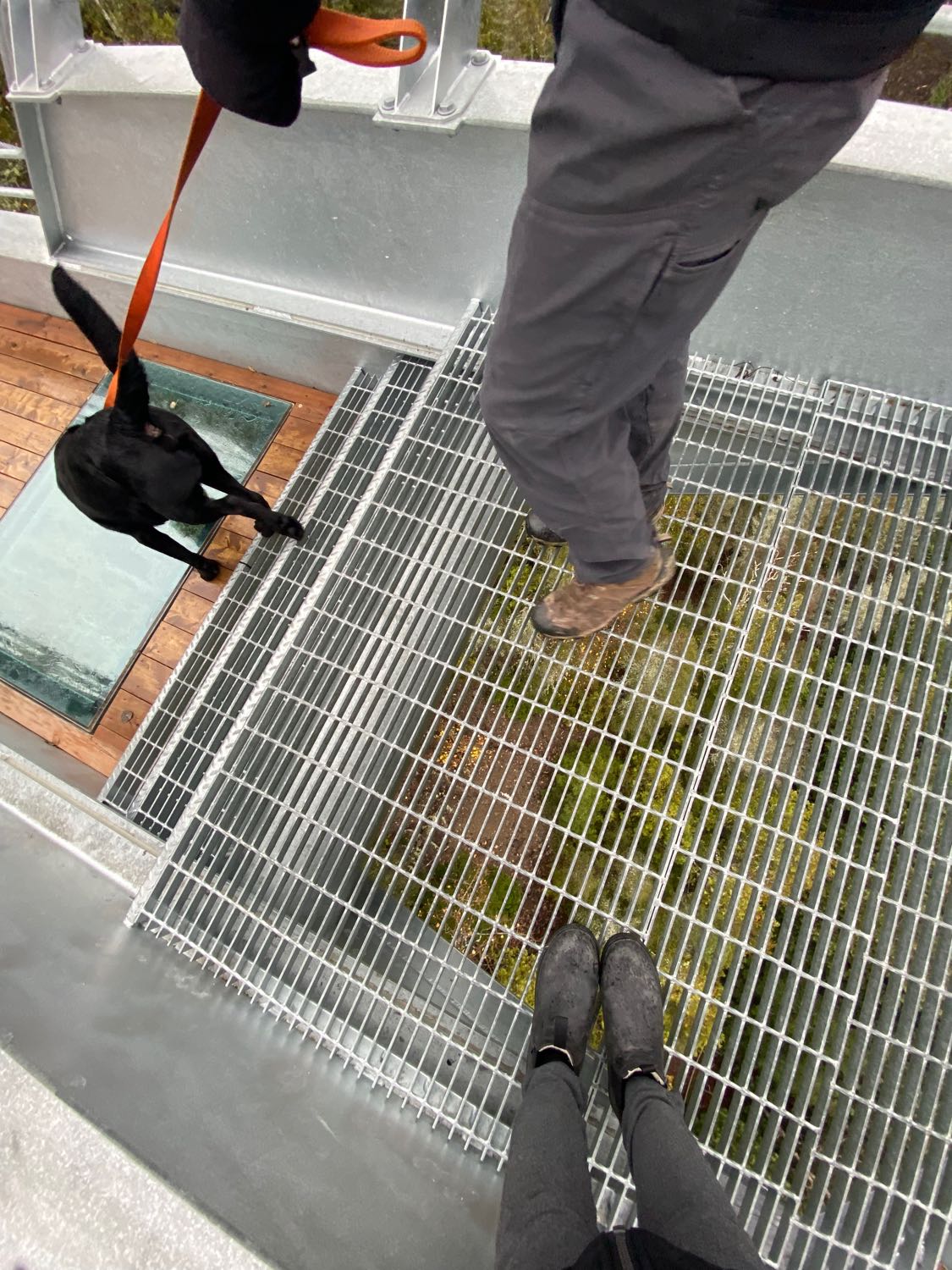 พื้นโครงเหล็กสามารถมองลงไปเห็นวิวข้างล่างได้ เหรียญบาทอาจหล่นได้ด้วย