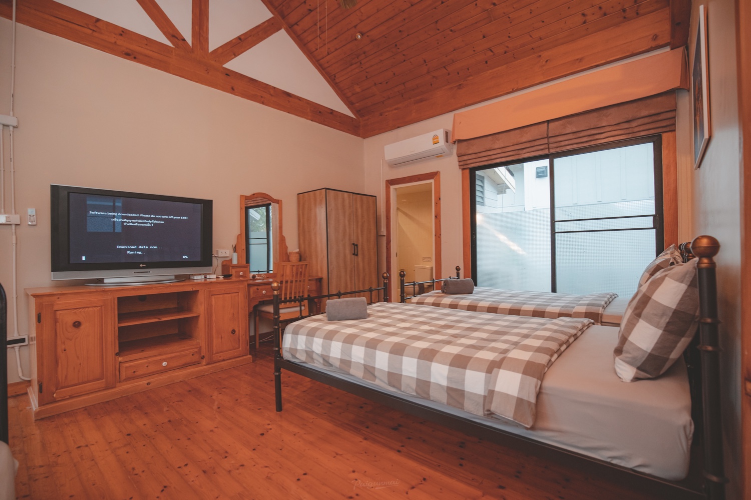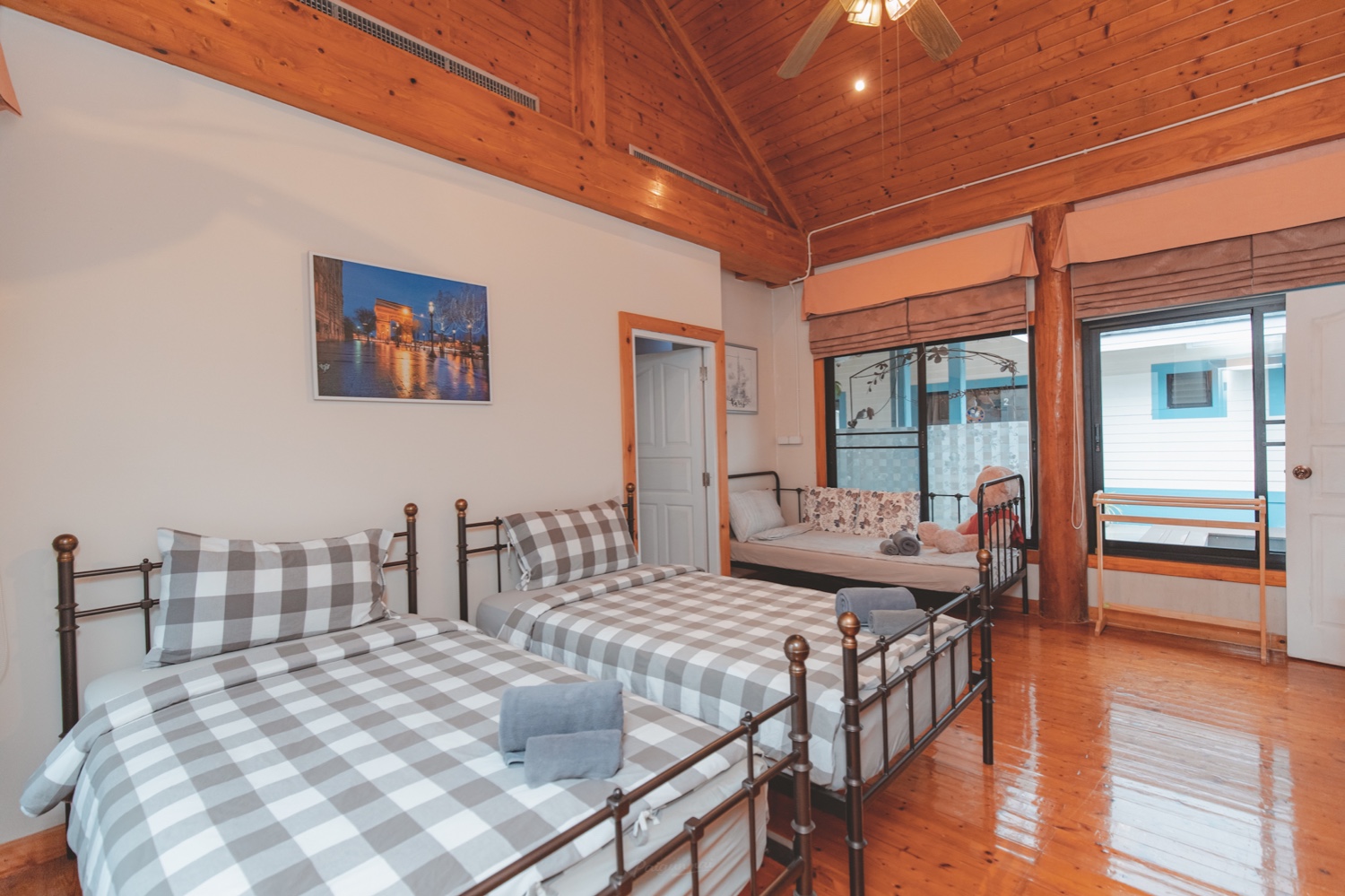 ห้องที่สอง เป็นเตียงคู่และมีเตียงเสริมด้วยนะ