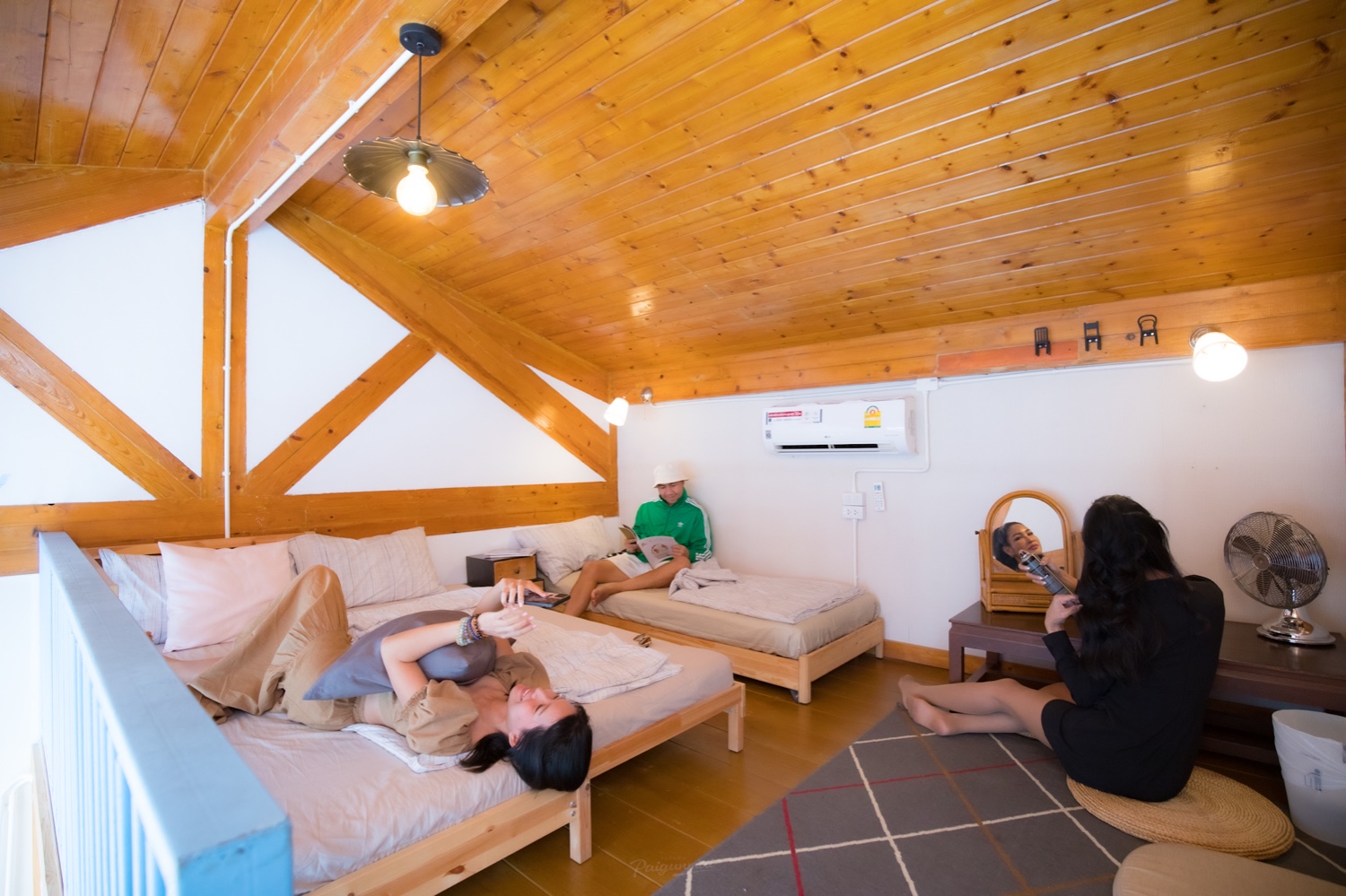 ห้องสุดท้ายอยู่บนชั้นลอยค่ะ ห้องนี้สวยเลยนะคะ นอนได้หลายคนเลย