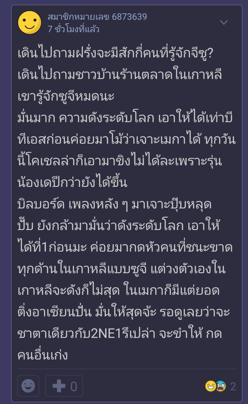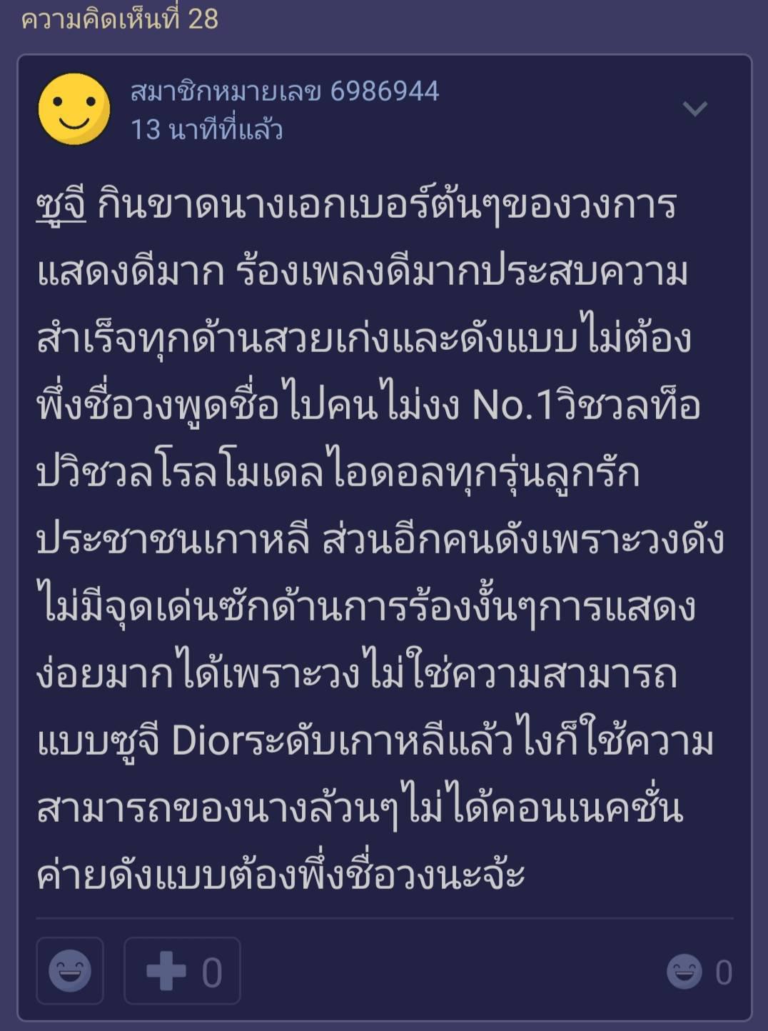 อย่างซอลฮยอน/แทยอน เอาจริงๆคือถึงจะยังทำงานอยู่เรื่อยๆทั้งคู่ แต่ก็เหมือนอยู่มานานแล้ว ไม่ได้เป็นกระแสร้อนแรง แฟนคลับก็ไม่ได้แอคทีฟหรือหัวร้อนง่ายขนาดนั้นแล้ว(ตอนนี้อ่ะนะ เมื่อก่อนก็น่าจะใช้ได้อยู่) ในกระทู้คือซอลฮยอนชนะขาดเลย ซึ่งแฟนคลับโซชิก็ไม่ได้เดือดร้อนอะไรเพราะบางเรื่องมันก็จริง หรือถึงจะไม่เห็นด้วยบางข้อ แต่แฟนแทไม่ได้แอคทีฟพร้อมปะทะแบบห้ามแตะห้ามพูดขนาดนั้นแล้ว ตัวศิลปินก็แก่จนจะเป็นป้าแล้ว แฟนคลับก็ไม่ต่างกัน ก็ไม่รู้จะมาแย่งชิงเอาชนะอะไรกับในบอร์ดพูดคุยแบบนี้ ไว้รอโดนด่าเสียๆหายๆค่อยบวกทีเดียว