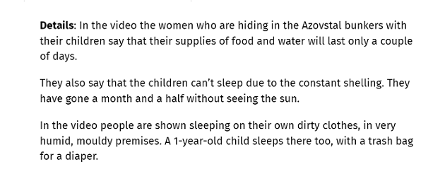 จริงๆ ยูเครนรู้ตั้งนานแล้วว่าในโรงเหล็กมีพลเรือน เด็ก ผู้หญิง อยู่ในนั้น
