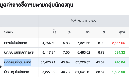 Sinthorn Summary 21/4/2565 : ต่างชาติซื้อสุทธิ 246.84 ลบ.