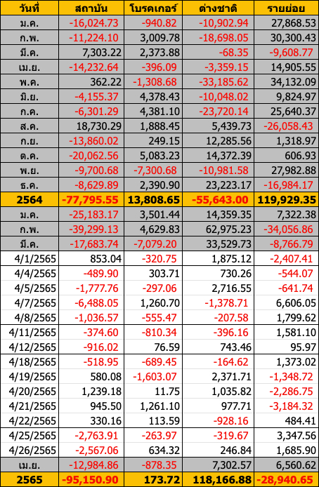 Sinthorn Summary 11/4/2565 : ต่างชาติขายสุทธิ -430.56 ลบ.