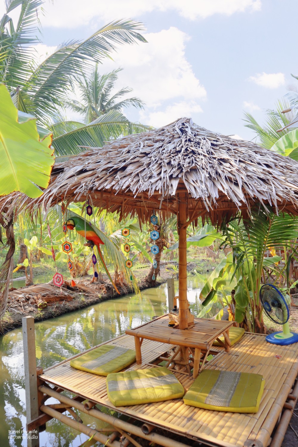 ร้านที่เป็นทั้งร้านกาแฟ ก๋วยเตี๋ยวรสชาติอร่อย ในร่องสวนทะพร้าว ที่ร่มรื่นเป็นธรรมชาติแบบสุดๆ ด้วยที่นั่งของร้านจัดเป็นแบบซุ้มๆ ตามคันคลองใต้ต้นมะพร้าว ข้างๆเป็นร่องน้ำ สามารถ ลงเรือพายเล่นตามร่องสวนได้