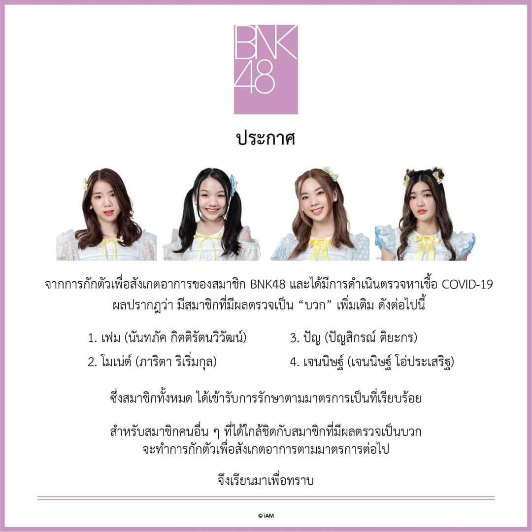 ด่วน!!! สมาชิกวง BNK48 ติดเชื้อโควิด-19 เพิ่มอีก 4 คน