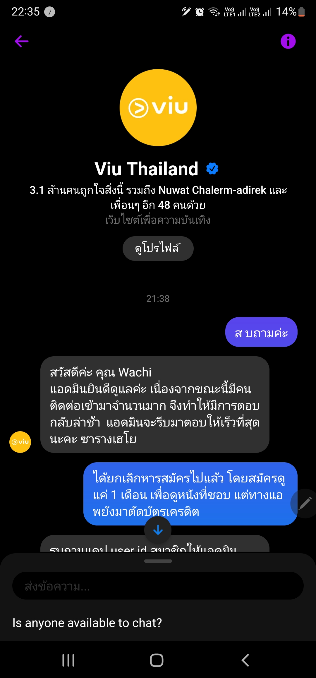 Viu ตัดบัตรเครดิตเอง ทั้งที่ไม่ได้ใช้งานมา 2 เดือนแล้ว