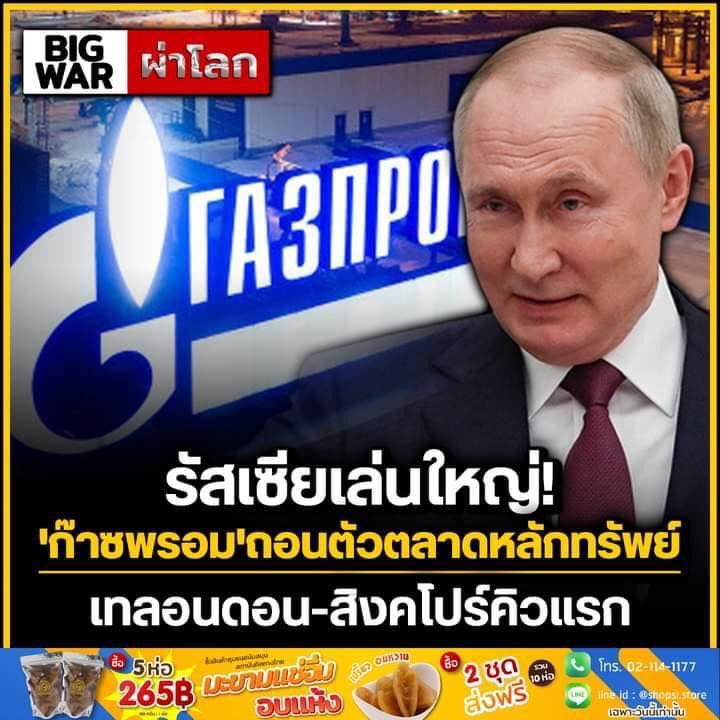รัสเซียถอดบริษัท gazprom พลังงานออกจากตลาด ลอนดอน-สิงคโปร์ คิวแรก