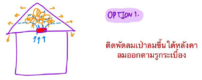 ระบายอากาศร้อนใต้หลังคา ควรติดพัดลมเป่าเข้าหรือดูดออกดีครับ